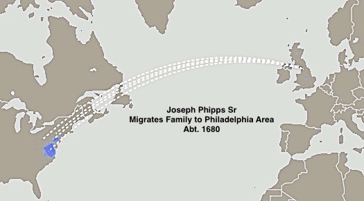 The lineage of our family of Phipps’ has been traced to the mid 1500’s to Wiltshire County, England. In the late 1600’s Joseph Phipps Sr, his wife and 9 kids left England for America and settled in an area near Philadelphia.