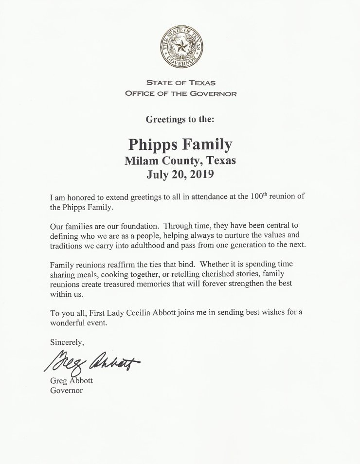 We have received this acknowledgement from the Governor of Texas, Greg Abbott